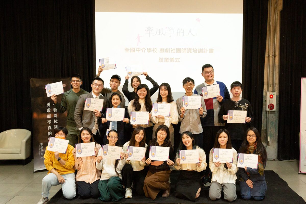 儀式最後公告通過考核的22名學員成為青藝盟戲劇種子教師,同時也即將於2023年2月媒合進入全國4所中介學校帶領學員進行戲劇社團課程,陪伴特殊境遇學生兩年,因為有他們無私的奉獻,青藝盟可以和未來即將投入第一線「中介教育學校」的老師們分享學習這些重要的價值觀,讓牽風箏的人帶著這些收穫,去陪伴更多特殊境遇青少年。