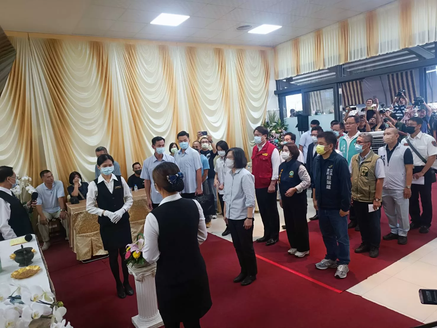蔡英文於今(23)日上午至現場視察,隨後前往殯儀館慰問殉職消防隊家屬。蔡英文強調,昨天深夜已指派內政部長林右昌前往屏東坐鎮,提供必要的協助,並啟動大量傷患機制。衛福部次長王必勝也南下指揮緊急醫療系統,以妥善處理燒燙傷患者。蔡英文表示,對於消防人員在救災中殉職感到非常遺憾,向他們及其家屬表示哀悼,並呼籲相關單位全力協助傷患,提供最好的醫療支援,期盼後續的救災行動能夠順利進行。