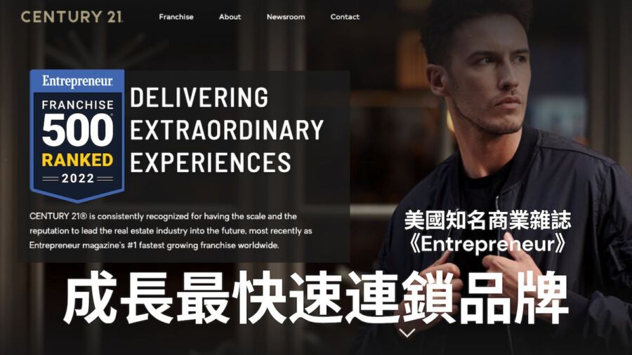 ▲21世紀不動產於2022年再度蟬聯美國知名商業雜誌《Entrepreneur》成長最快速連鎖品牌500強。(圖/21世紀不動產提供)