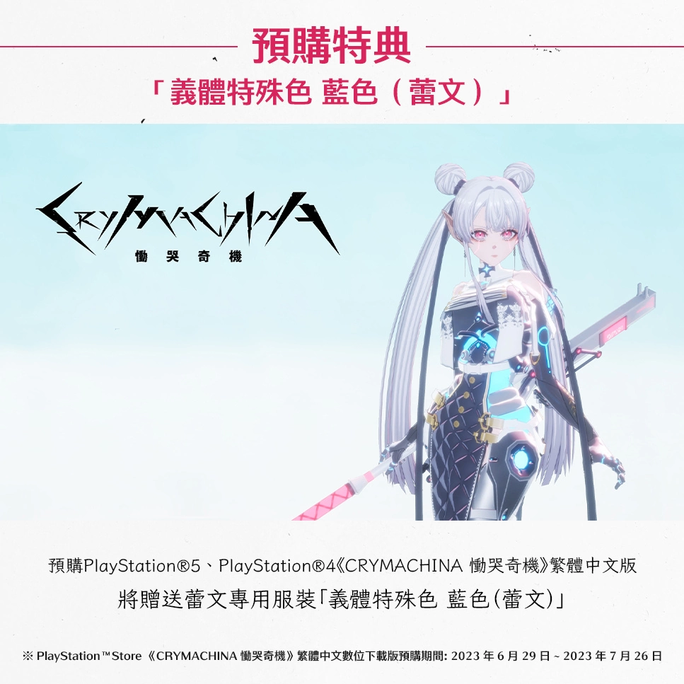 ※ PlayStationStore 《CRYMACHINA 慟哭奇機》繁體中文數位下載版預購期間:2023年6月29日~2023年7月26日