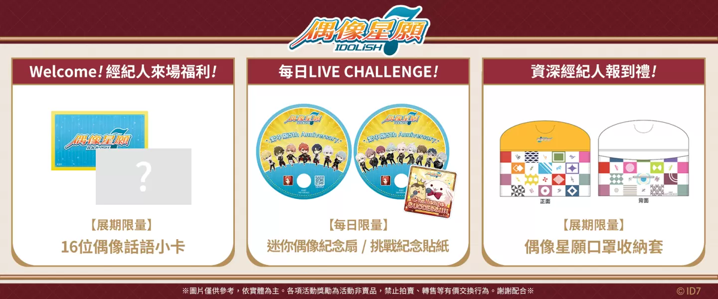 感謝各位經紀人的支持與關愛,一直以來聲援《IDOLiSH7-偶像星願-》!官方特別企劃 5 週年感謝回饋,首次在海外舉行會場先行販售活動!搶先曝光多項紀念商品,相關商品資訊及購買辦法請見活動網頁及現場公告。