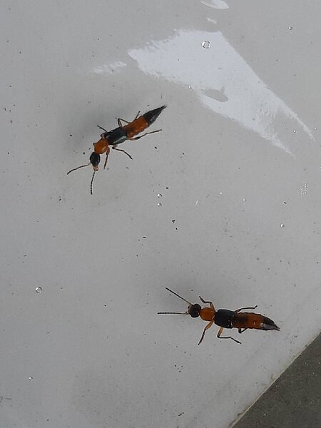 夏天常見隱翅蟲出沒,因隱翅蟲具有趨光性,受驚擾及夜晚時會出現於住家附近,雖然它體內的毒液會引發人類皮膚炎,但不會主動叮螫人類,台中市政府農業局提醒,只要不接觸到蟲體內的毒液,做好自身防護及清理居家環境,如濕地、水溝、雜草叢、水田與樹林等陰暗潮濕的地方,不必過度恐懼。