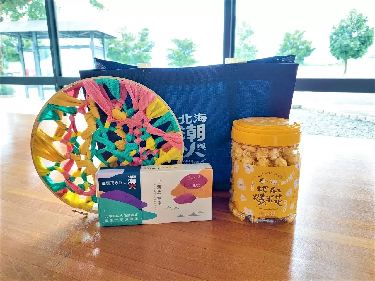 ▲活動好禮:北海潮與火活動概念文創商品「Wave」1件與活動期間限定商品「潮聚玩攻略」1份。圖片來源/新北市政府綠美化環境景觀處提供