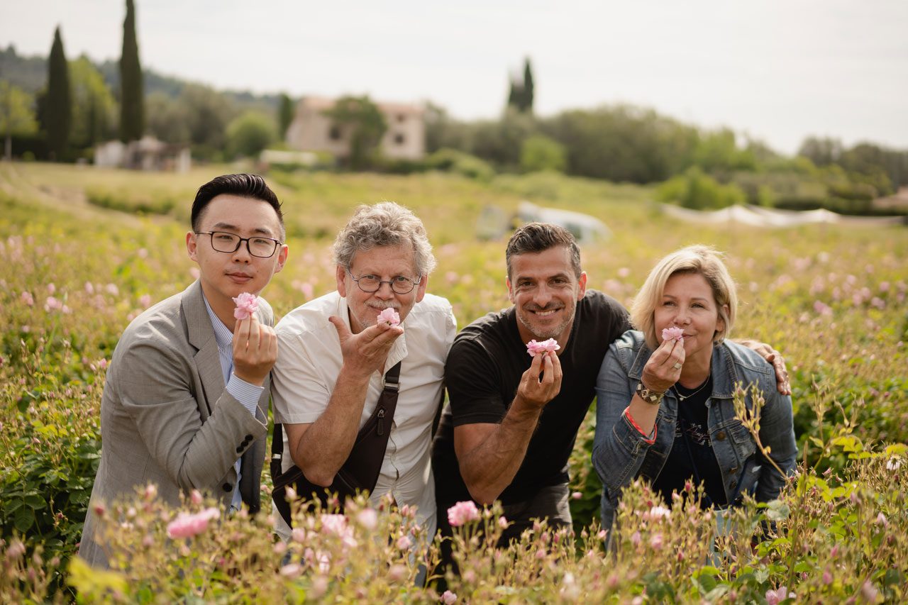 今年來自台灣的香氛考察團有幸共襄盛舉,領隊東區暖男香氛室共同創辦人何宗禧老師表示:「五月玫瑰節是格拉斯市最引以為傲的活動之一。透過香水學院的安排,讓學員們得以親手摘取珍貴的五月玫瑰,每年全世界僅有數公斤的寶貴萃取,大部分提供頂級品牌香水所使用。」
