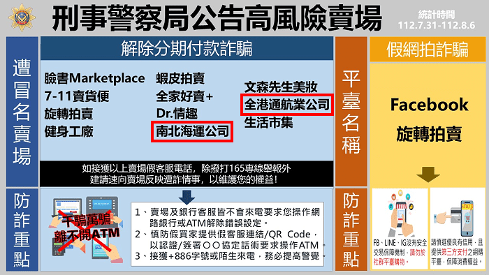 ▲馬祖二家航運公司被揭露於刑事警察局公告高風險賣場中(圖/翻攝自刑事警察局)
