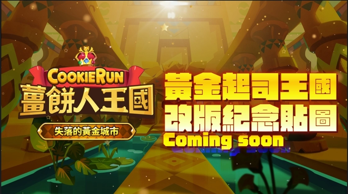 《薑餅人王國》迎來全新更新,在「失落的黃金城市」章節裡,勇敢餅乾一行人即將遭遇一場會造成巨大毀滅的戰爭,為了求援而踏上了尋找第四位上古餅乾「黃金起司餅乾」的旅程。而等待著他們的黃金起司王國是個位於沙漠上方、充滿金黃起司流淌而下、有著雄偉神殿並享受著太平盛世的富有王國。