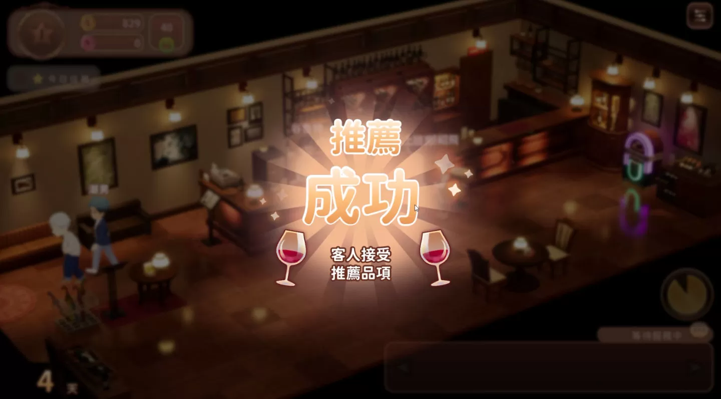 而在實際遊玩方面,在一開始營業後,客人就會開始陸續上門。有的客人雖然只是單純落座點單,但有的客人頭上卻會出現酒瓶圖案,這時候就是玩家上陣的機會。面對這樣的客人,玩家可以進行酒類推薦,趁機把賣得不好的酒類餐點給推銷出去。不過可要小心避免推薦失敗,就會錯失讓客人開心點讚的機會。