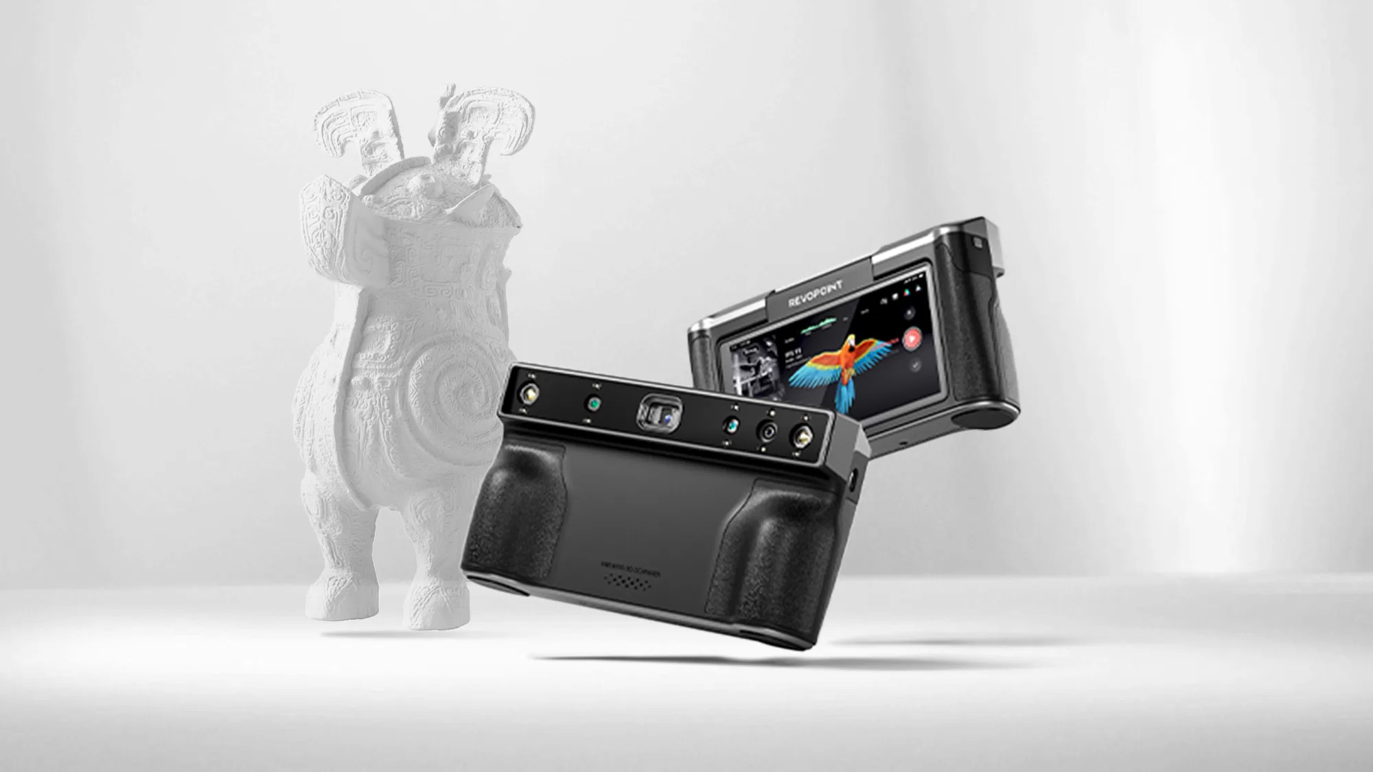 Revopoint MIRACO和與前幾代最大的不同,就是它不在需要連線手機或電腦APP,開機就可以直接拍攝,拍完即刻建模,直接將運作軟體裝載進機器中,再透過2K Almoled觸控大螢幕即時顯示出掃描影像。全新的雙掃描模式( 單拍掃描/連續掃描)也是業界首創新革新,單拍模式適用於多樣特徵或無特徵的物件,不用擔心漏掉細節;連續模式高達 15 fps 的高速處理,近距離、遠距離、小型物或是大型物都可以快速3D建模成像,兩種模式皆可以在掃描中直接切換。