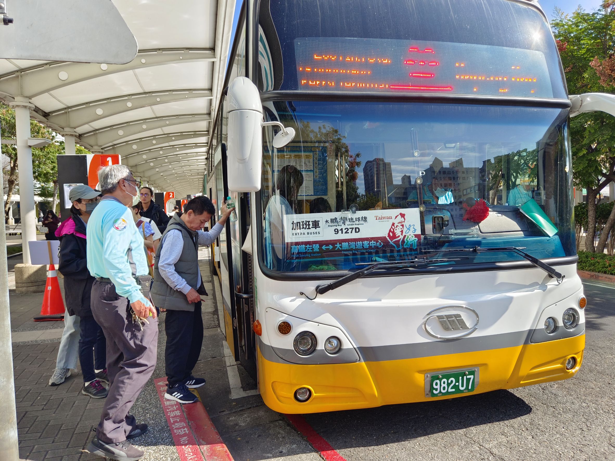 乘客在高鐵左營站1號月臺搭乘【9127D】鵬琉線( 圖/ 高雄區監理所提供)