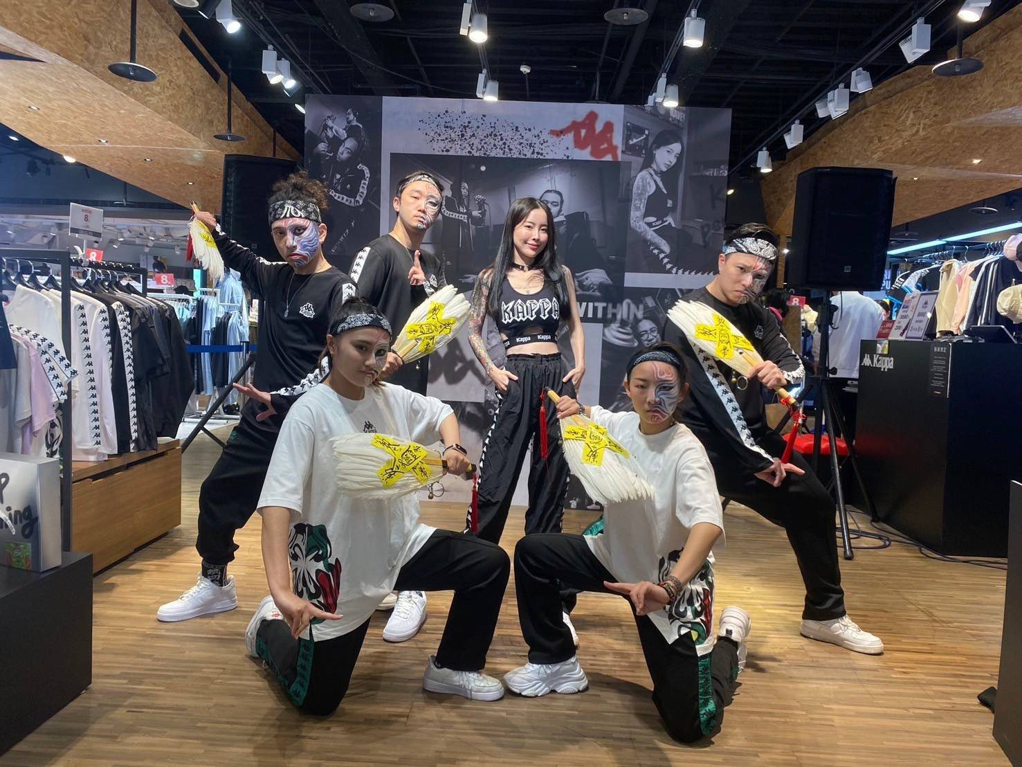 近日剛結束的Kappa台中中友一日店長活動,則邀請家將街舞翹楚「鐵四帝」以及曾入選百大DJ的昆娜Queena,透過融合家將「半臉」文化的街舞表演,搭配精心挑選的DJ狂歡音樂show,將現場氣氛推到最高點。此外,現場展示與兩位一日店長的聯名系列商品,包含代表台灣官將首文化、以符令字體作為設計元素的Banda長T,還有呈現DJ Queena強烈個人風格的歌德風純黑經典Kappa T,獨特設計更是讓不少民眾停下腳步、佇足欣賞。