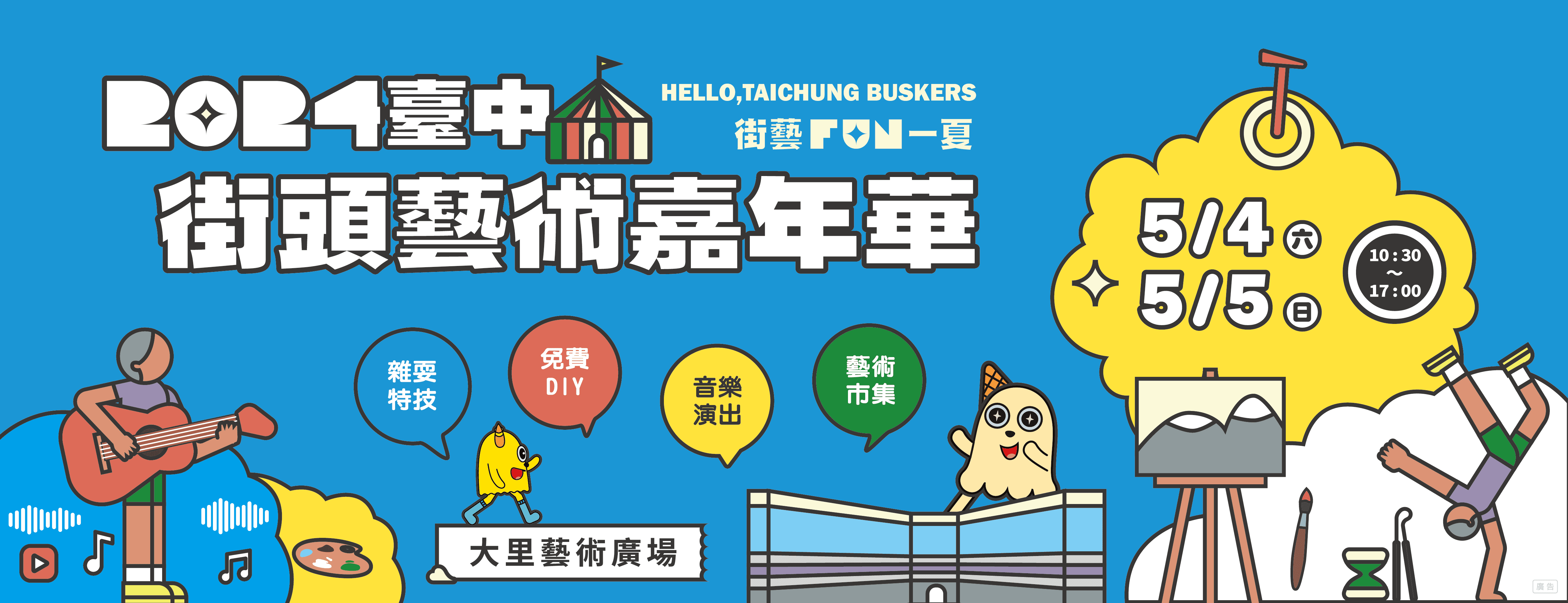 文化局表示,為推廣街頭藝術,今年嘉年華移師到大里藝術廣場,也是臺中市85處街頭藝人開放場所之一,並以「街藝表演」、「藝術市集」、「手作體驗」3大方向為主軸,展現臺中街頭藝術的獨創性。活動5月4日至5月5日從早上10時30分到下午5時止,匯聚共40組多元型態的街頭藝人,開幕還特別邀請以溜溜球進軍太陽馬戲團的段智敏及水晶球女舞者蔡欣妤演出,讓大小朋友體驗最Local、最精華的街頭藝術活動。