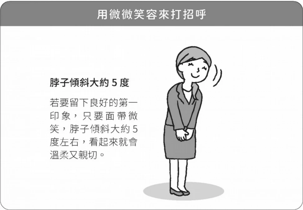 更加分的貼心MEMO:在傾聽時,只要臉微微傾斜5度,然後一邊微笑一邊聽對方說話,看起來就會特別親切和善;附和對方時,假如只是「嗯嗯」幾聲會聽起來很隨便,必須改成說「是這樣啊」、「我明白了」等等,加上一些表達共鳴的回應。