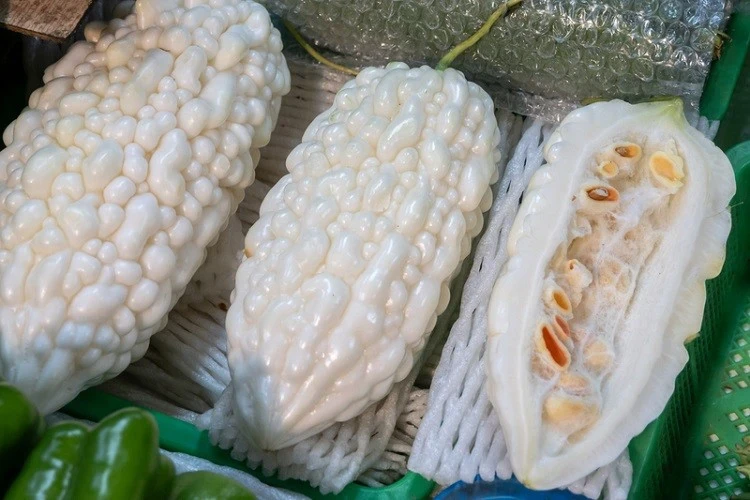 - 白玉苦瓜:紡錘果形,果色雪白,口感厚實,苦味低,適合做成各種料理。像是苦瓜封,可加入豬肉、蔭瓜、水及調味,小火燉煮即可。