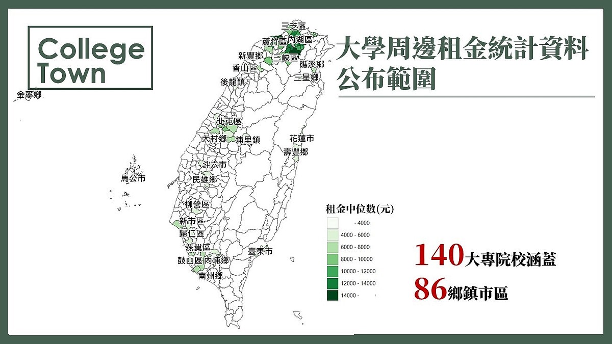 內政部指出,這次公布大學周邊租金統計資訊,是運用今(113)年3月31日當日有效的租金補貼租約資料進行統計,並以全國大專院校主要所在的86個行政區(鄉鎮市區)為發布單元,提供租金四分位數統計數據,希望能讓青年學生更瞭解當地租金價格分布情形;該統計資訊將公布於地政司網站「租賃條例專區https://www.land.moi.gov.tw/chhtml/news/89提供下載。