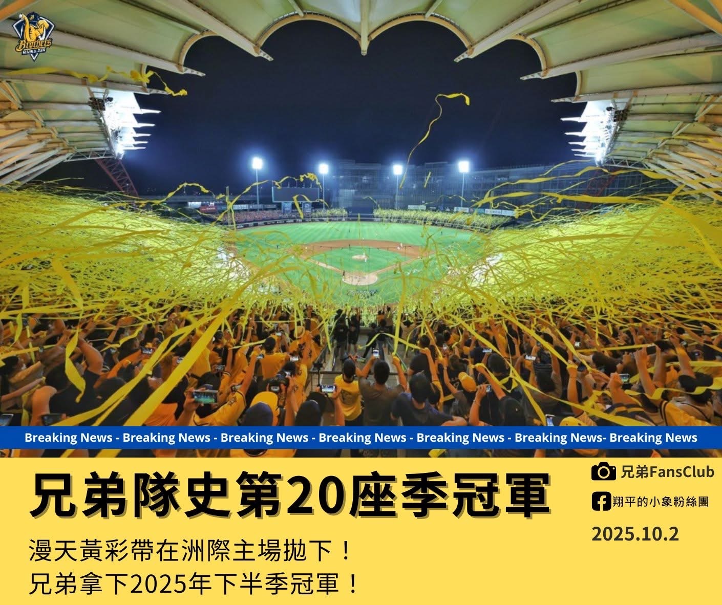中華職棒 2025 年下半季戰爭正式落幕,中信兄弟隊以穩健表現成功奪下下半季冠軍,這也是球隊隊史第 20 座季冠軍,同時寫下中職史上 36 年來首次有球隊下半季封王的壯舉,