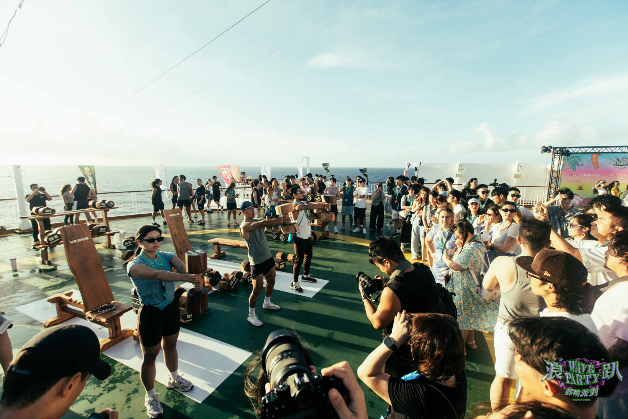 STEPC與各運動品牌(如VERVE、健身工廠等),於郵輪各區域設計專屬運動挑戰活動,如:甲板打造 360 度海景健身房,並規劃多元挑戰賽:健身闖關、甲板酒精路跑、早晨瑜伽、泰拳體驗等,白天同樣精采不間斷。