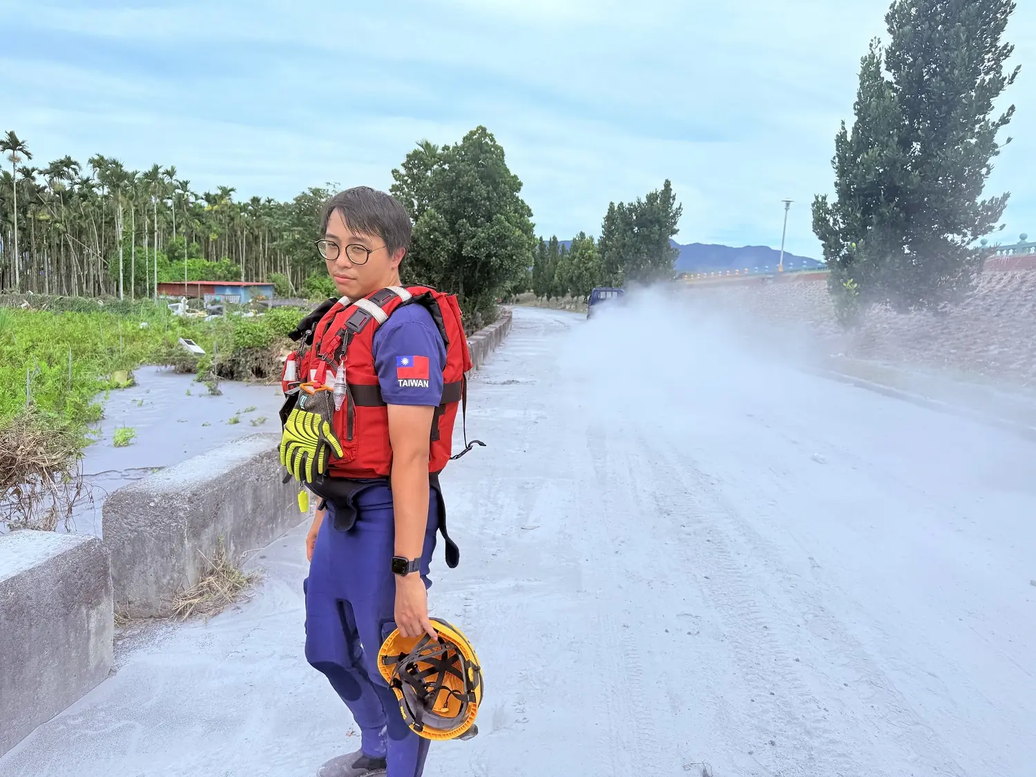 抵達災區後,映入眼簾的是滿目瘡痍的泥流與被掩沒的建物。「整片土地都被泥漿覆蓋,分不清是農田還是道路。」黃漢群與特搜隊員在泥濘中相互支撐、艱難前進,盡快抵達受困民眾的位置。現場環境惡劣,工具難以施展,隊員們只能徒手挖掘;醫療組同時監測體能狀況、補給鹽糖水分,避免中暑與失溫。