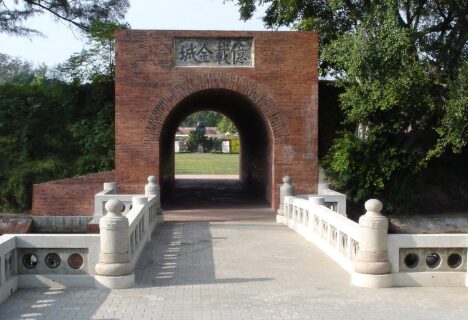 憶載金城,俗稱二鯤鯓砲臺或安平大砲臺,位於臺南市安平區。是清朝末年為強化臺灣海防所興建的一座西式砲臺,由清廷欽差沈葆楨建於1874 年,是清朝末年為強化臺灣海防所興建的一座西式砲臺。自1874年動工起,到1876 竣工,億載金城以其「稜堡式」紅磚構造、護城河與砲位設計成為當時臺灣首座具現代軍事防務構造的砲臺。砲臺建成後曾配置有多門英製阿姆斯壯大砲、小砲與後膛砲等武器,並利用護城河與水道做為防禦設施。但隨著武器技術更迭與戰略環境改變,其軍事功能逐漸式微。日本統治時期,億載金城經歷毀壞與閒置,設施近荒廢。
