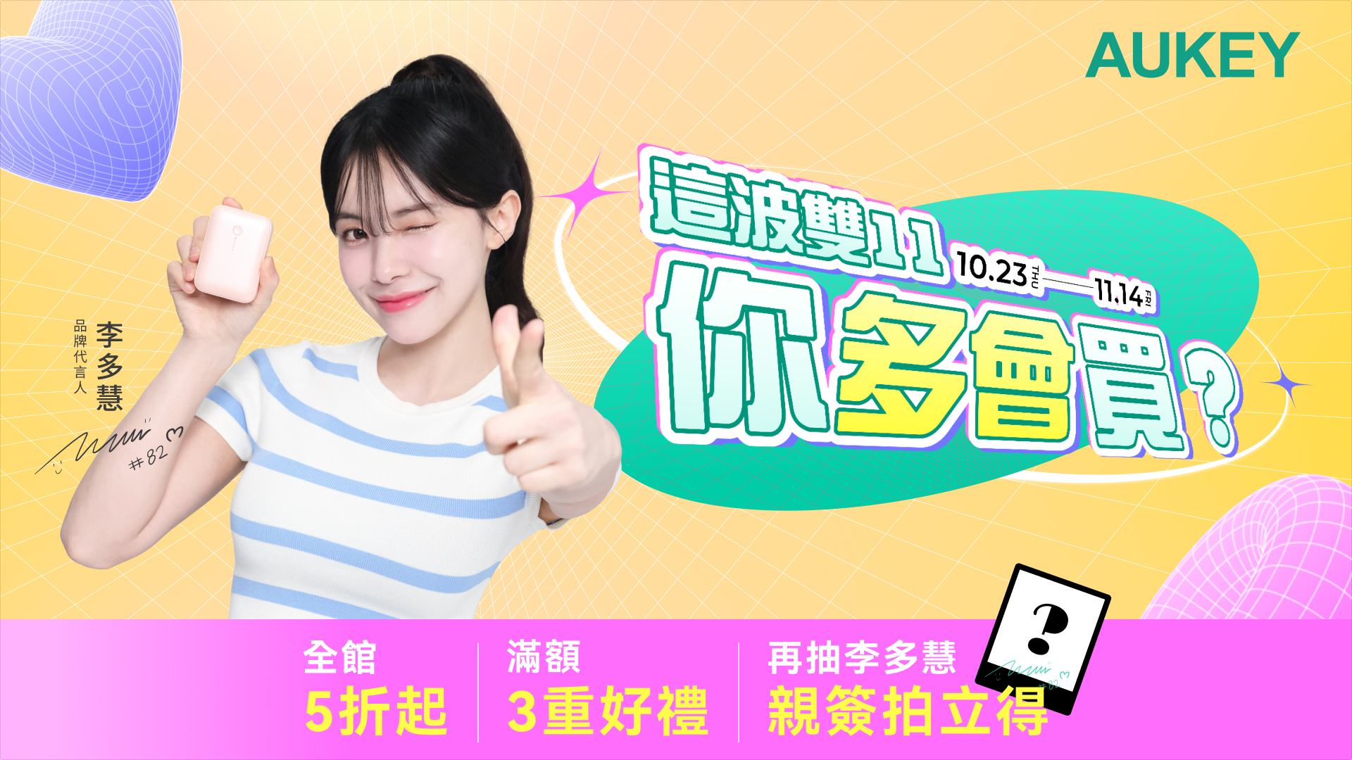 台灣智選家代理、全球充電領導品牌AUKEY迎接年末盛事「雙11購物節」,帶來年度最強折扣力度,讓消費者開心購物,想買就買零負擔!多款人氣夯品最低下殺5折起,滿額送多項好禮,再抽李多慧簽名拍立得,多龜們千萬不要錯過,活動期間11月14日,下單趁現在!這波雙11,你「多會」買?