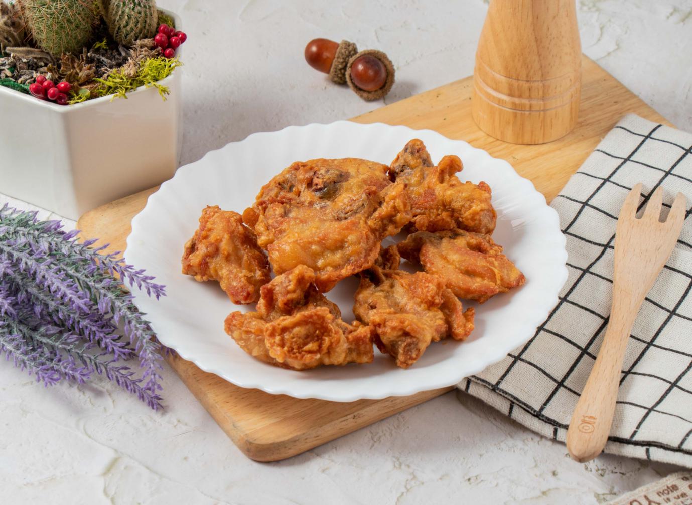 豆乳雞並非單靠炸功,而是以豆腐乳或紅麴作為醃料核心。經過長達 8 小時以上的醃漬,肉質會比一般炸雞更軟嫩且入味,咬下去能吃到淡淡發酵香氣與濃郁鹹香,表皮則因改良過的裹粉配方更加酥脆。與傳統夜市炸物相比,風味層次更豐富,也更耐吃。