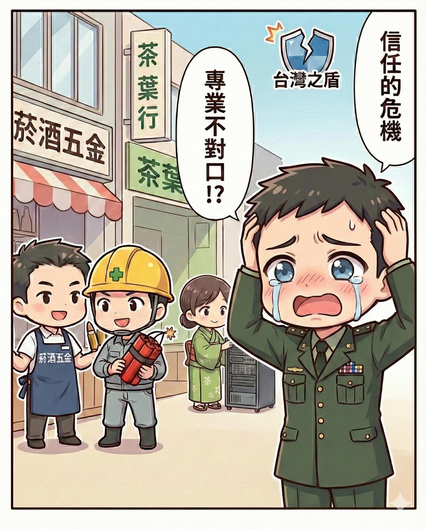 從傳播角度看問題,這已經不只是「形象不佳」,而是把「台灣之盾」這個本該凝聚民心的象徵,拖進瓜田李下的泥淖。總統對內要求社會支持軍購、支持特別預算,對外則向國際強調台灣有決心、有能力守住民主前線;畫面一轉,民眾在新聞上看見的卻是菸酒行賣子彈、裝修公司賣炸藥、茶葉行顧伺服器。高舉的政治語言和日常讀到的標案實況,越拉越開,中間的裂縫,就是信任的流失。