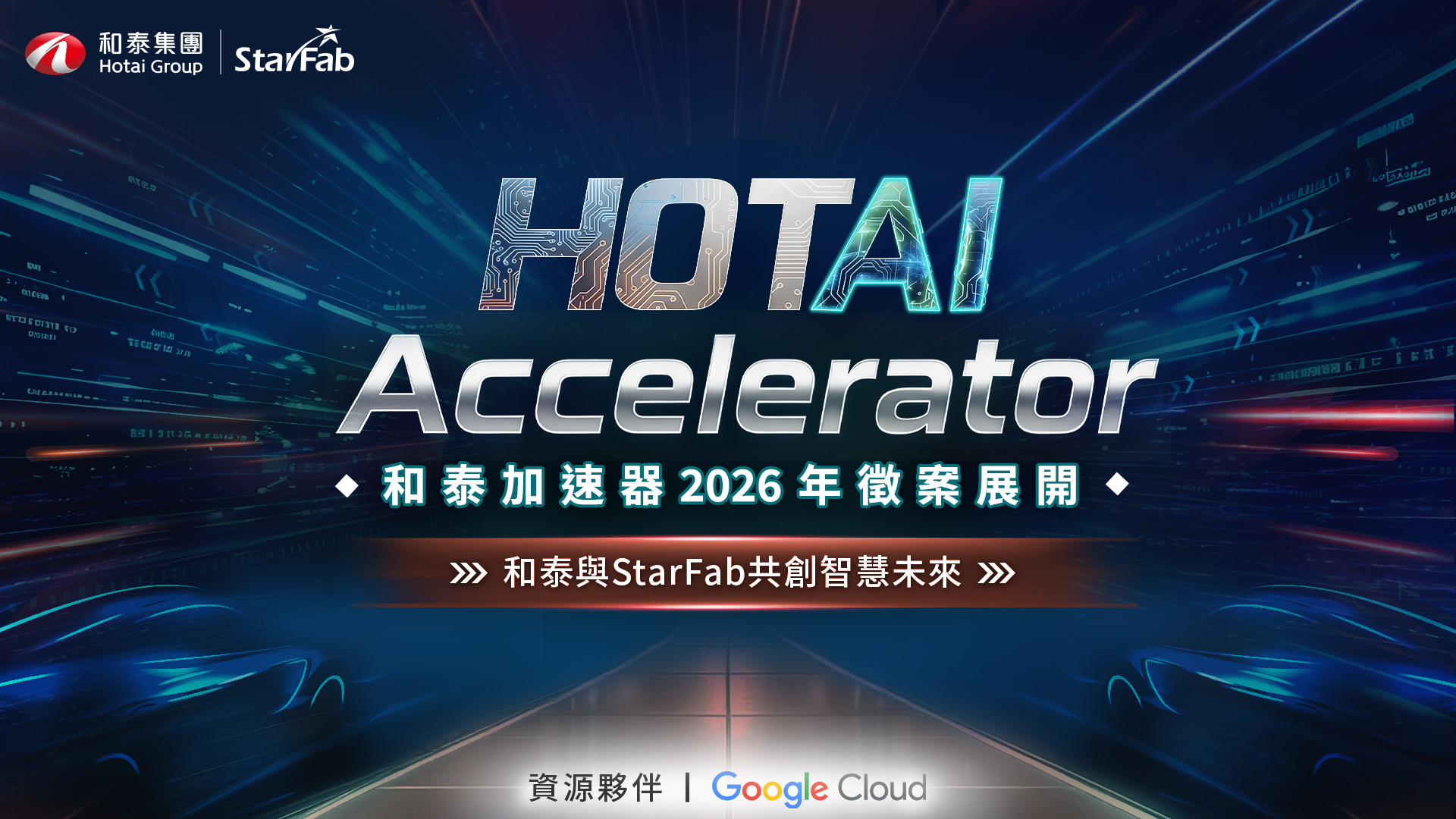 「和泰加速器」2026年第一期徵案至2/11(三)止,誠摯邀請全台新創報名,與和泰集團共同推動技術落地與商業合作,攜手創造智慧未來嶄新可能。徵案詳情請見「和泰加速器」官網:https://zh.starfabx.com/hotai-starfab-accelerator/。