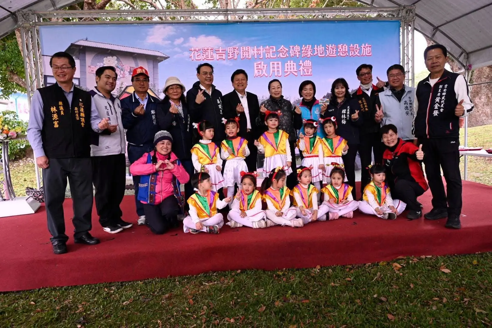 花蓮縣政府為推動文化資產活化並提升社區生活品質,今(2/7)日上午10時在吉安鄉舉行「吉野開村記念碑綠地遊憩設施啟用典禮」。本次工程透過專業的古蹟保存技術與公共空間營造,將具有百年歷史意義的縣定古蹟與現代遊憩設施完美結合,讓歷史場域轉化為兼具教育與休閒功能的綠色空間,重新融入民眾的日常生活。