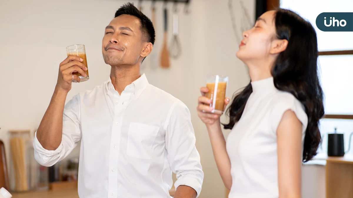 第二步:搭配熟悉飲品。可加溫水、無糖豆漿或果汁,早上或下午皆可飲用。
