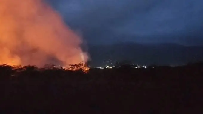 今天約莫晚間18時,台東知本溼地再度驚傳火警,從民眾提供的畫面中看到野火在知本溼地漫延燃燒,好幾公里遠都可以看到熊熊火光。